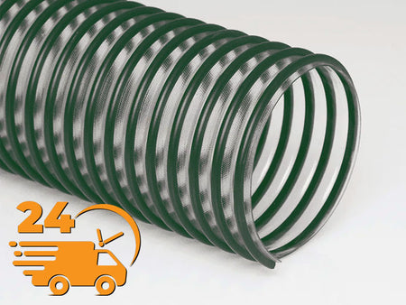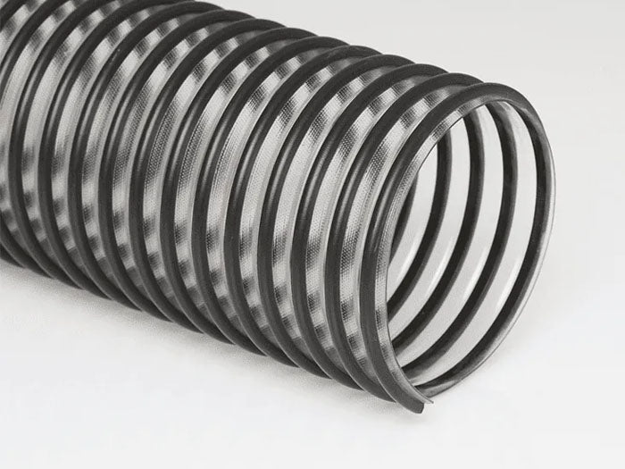Medium weight clear co-extruded PVC hose with a rigid black or green external PVC helix.